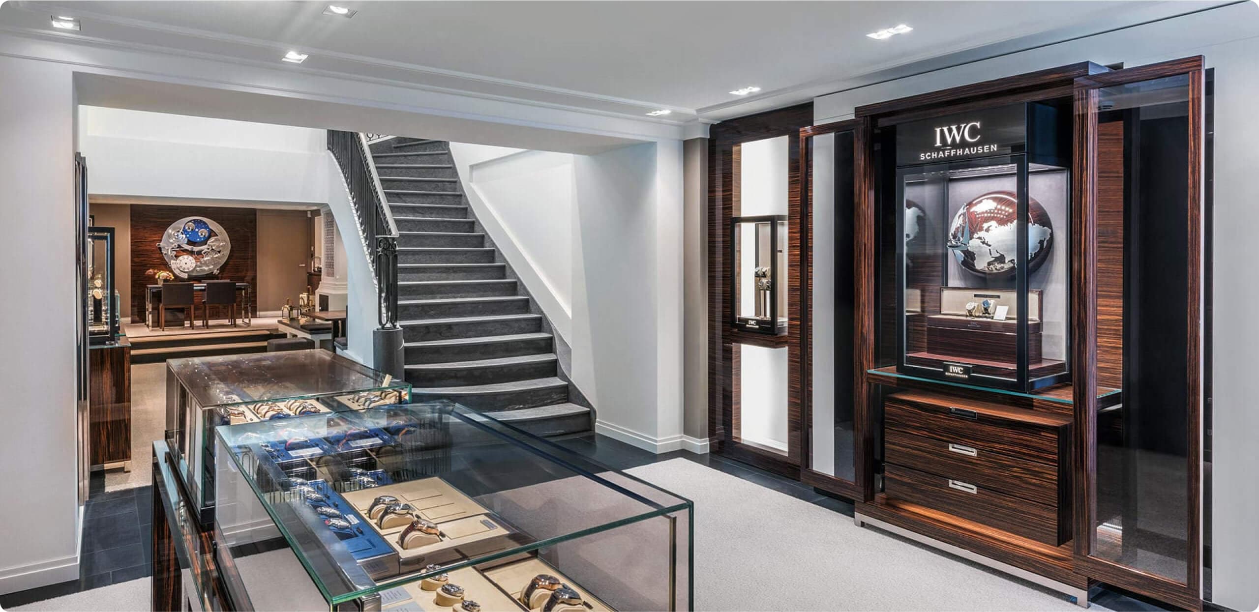 Auf höchstem Niveau: Wir haben die IWC-Boutiquen in Frankfurt und München elektrifiziert und die Licht-Steuerung programmiert.